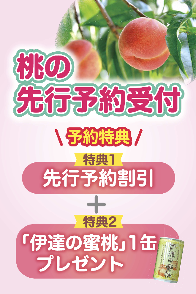 ① JAふくしま未来・・・「桃の先行予約受付」