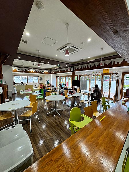 「ファミリーパークだて」には、これまでのこども遊び場にはなかった、保護者同士や地域住民との交流ができるママカフェを設けるほか、幼児用の屋内砂場、三輪車のサーキット場を設置しています。