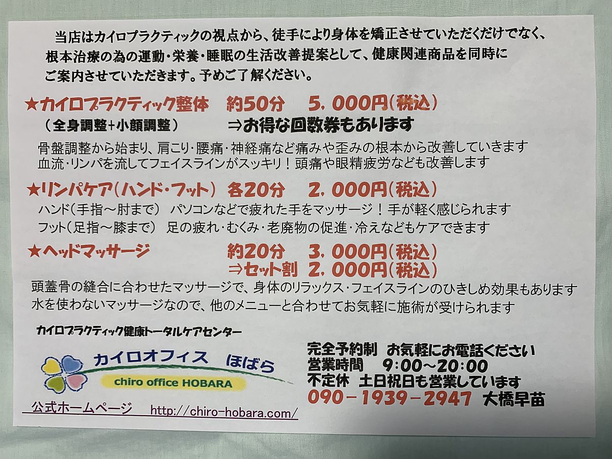 HOMEPAGEhttp://chiro-hobara.com/