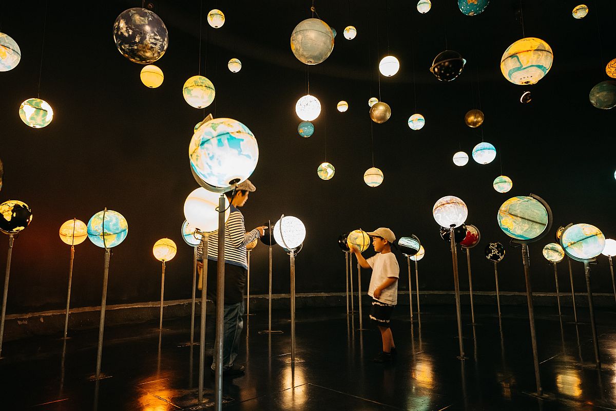 遊びと学びのミュージアム1F アースフロアでは、アースとサイエンスをテーマに国内外のアーティストによる体験型作品を展示しています。様々な作品に見て・触れて遊びながら、不思議な科学の世界へと興味を広げたり、古代や宇宙へと思いを巡らせてみましょう