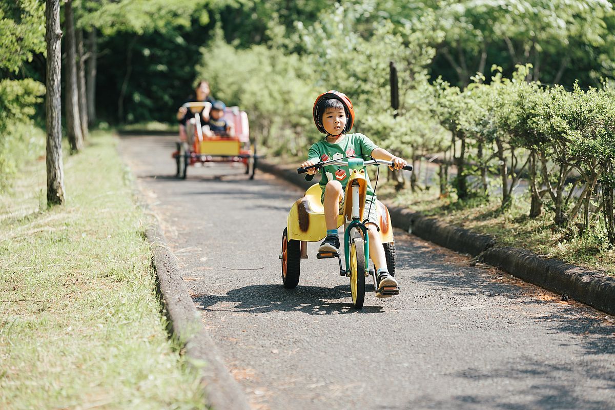 小さなお子様から大人まで楽しめる乗り物がいろいろ。体を思いっきり動かして、大自然の中を走り抜けてみよう