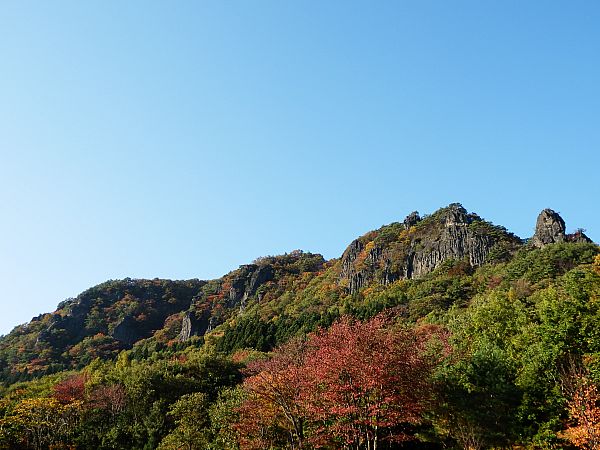 阿武隈山系のゆるやかな稜線の中にそそり立つ奇岩怪石は、ひときわ威容を誇り、春の新緑、山ツツジの花開く5月下旬、そして10月中旬~11月初旬の紅葉は目を見張る美しさとなります。特に紅葉のころ、岩肌に赤や黄色の色彩がちりばめられたさまは、錦絵を思わせます。