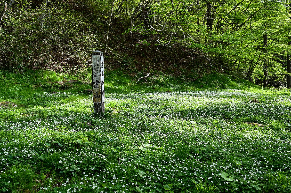 霊山登山口から約1時間、国司館跡を少し登ったところに霊山城跡があり、石碑が建立されています。
