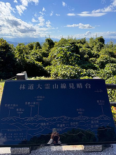 林道大霊山線の見晴台からは一切経山、吾妻小富士、安達太良山、蔵王山が見渡せる大パノラマが広がります。夜には、星空が楽しめ、夜景もきれいな絶景スポットです。