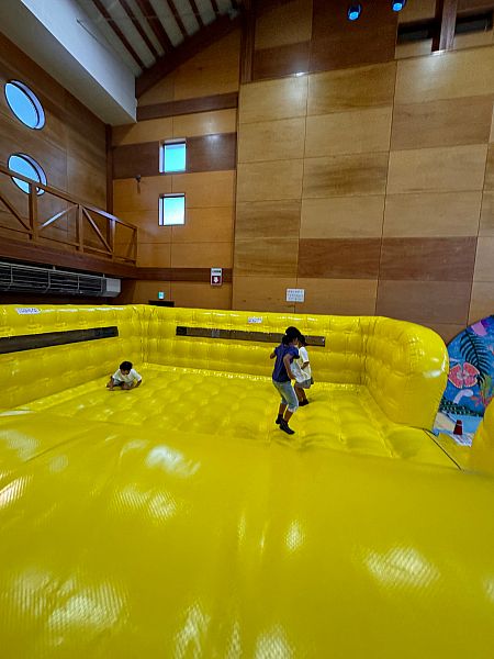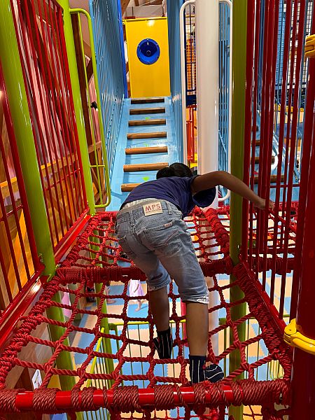 網目状のロープが張り巡らされたエリアや垂直に登って空中を散歩する飛行機雲の道、スリル満点のらせん状の筒型滑り台、エアートランポリンなど子どもたちに大人気です。