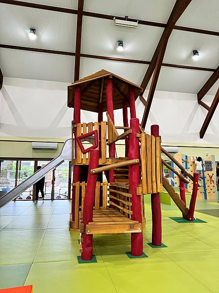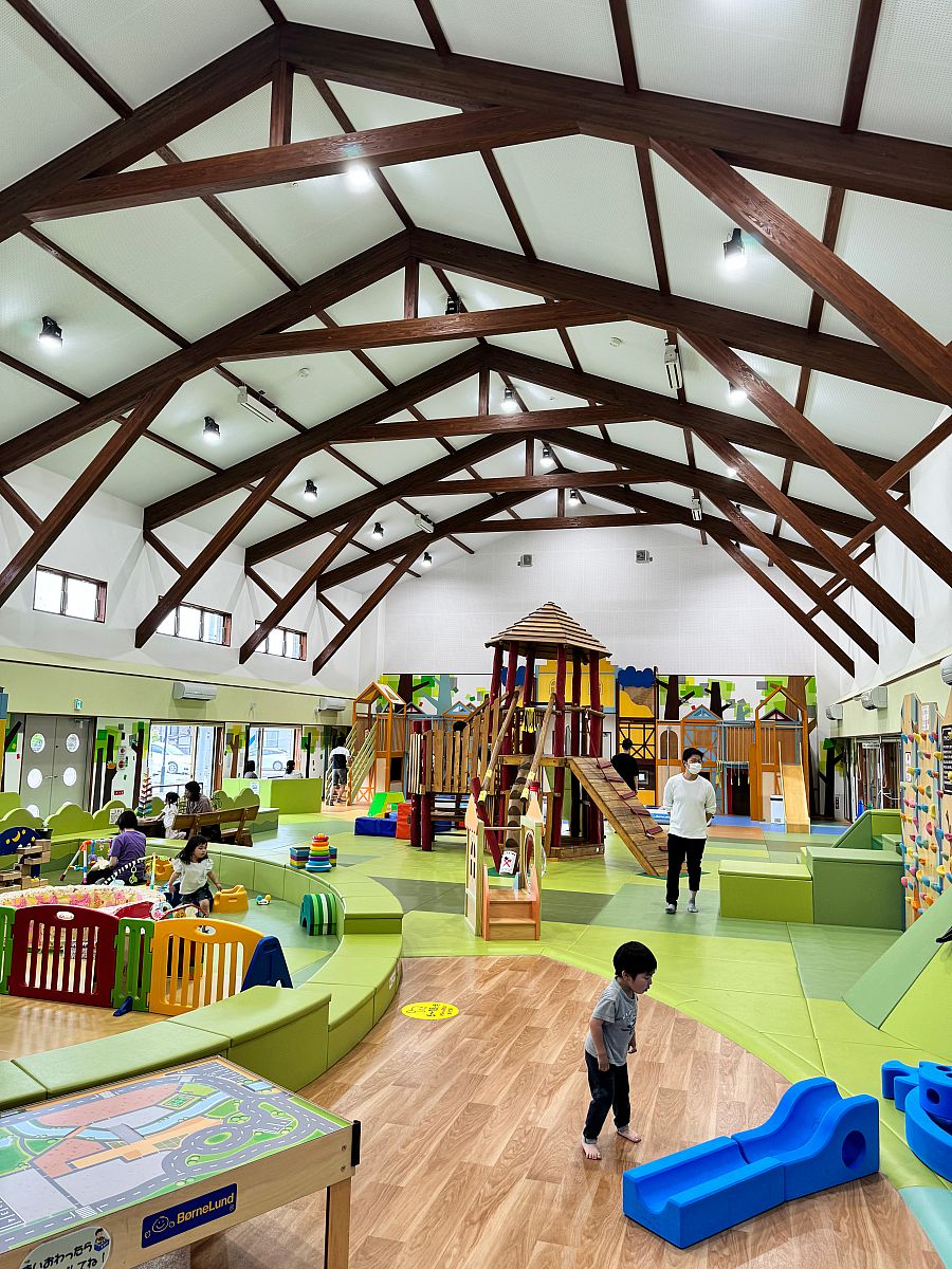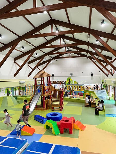 「ファミリーパークだて」には、これまでのこども遊び場にはなかった、保護者同士や地域住民との交流ができるママカフェを設けるほか、幼児用の屋内砂場、三輪車のサーキット場を設置しています。